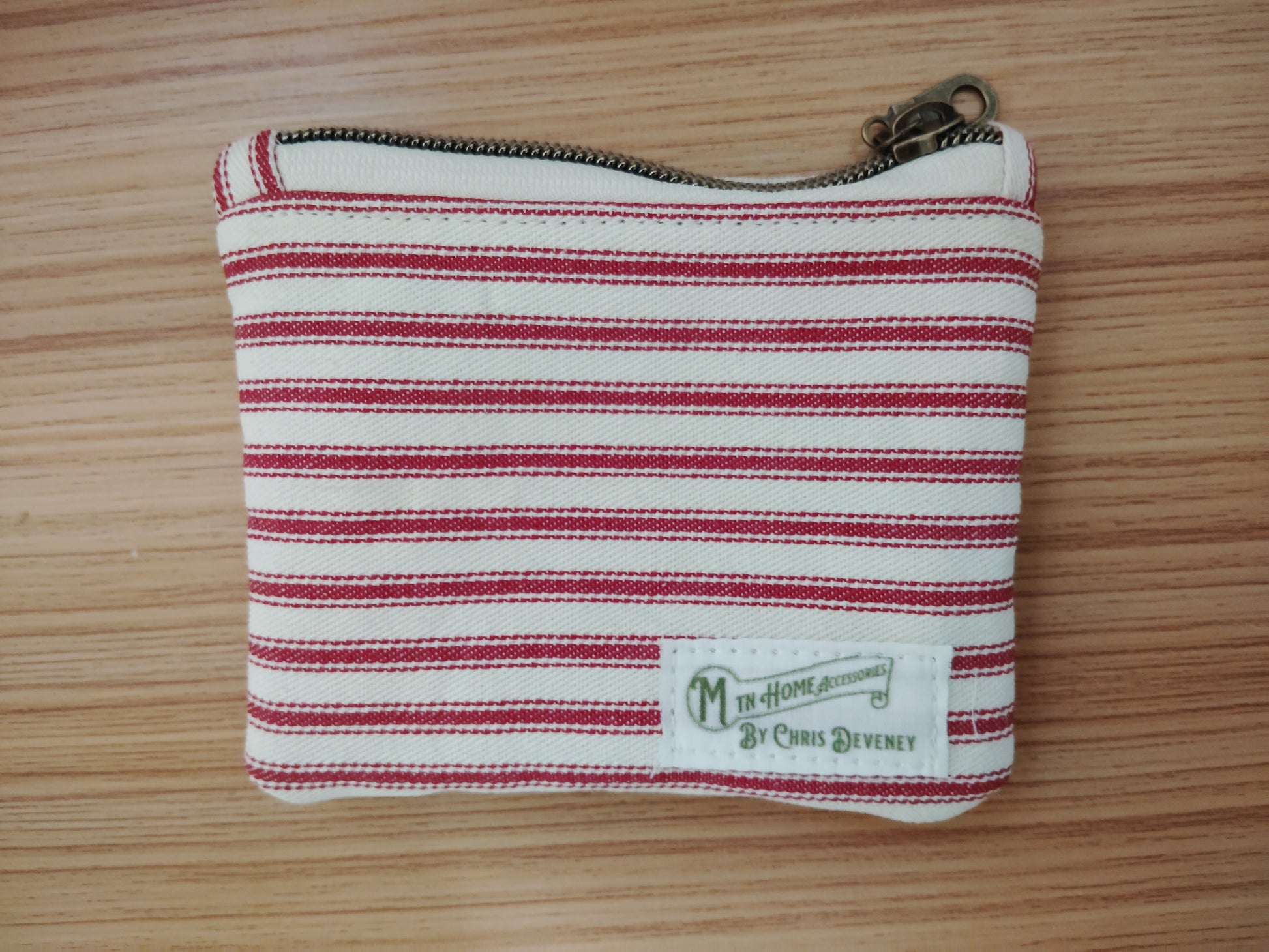 Thick woven cotton like our blue striped bag, feels like canvas. With an easy glide zip.